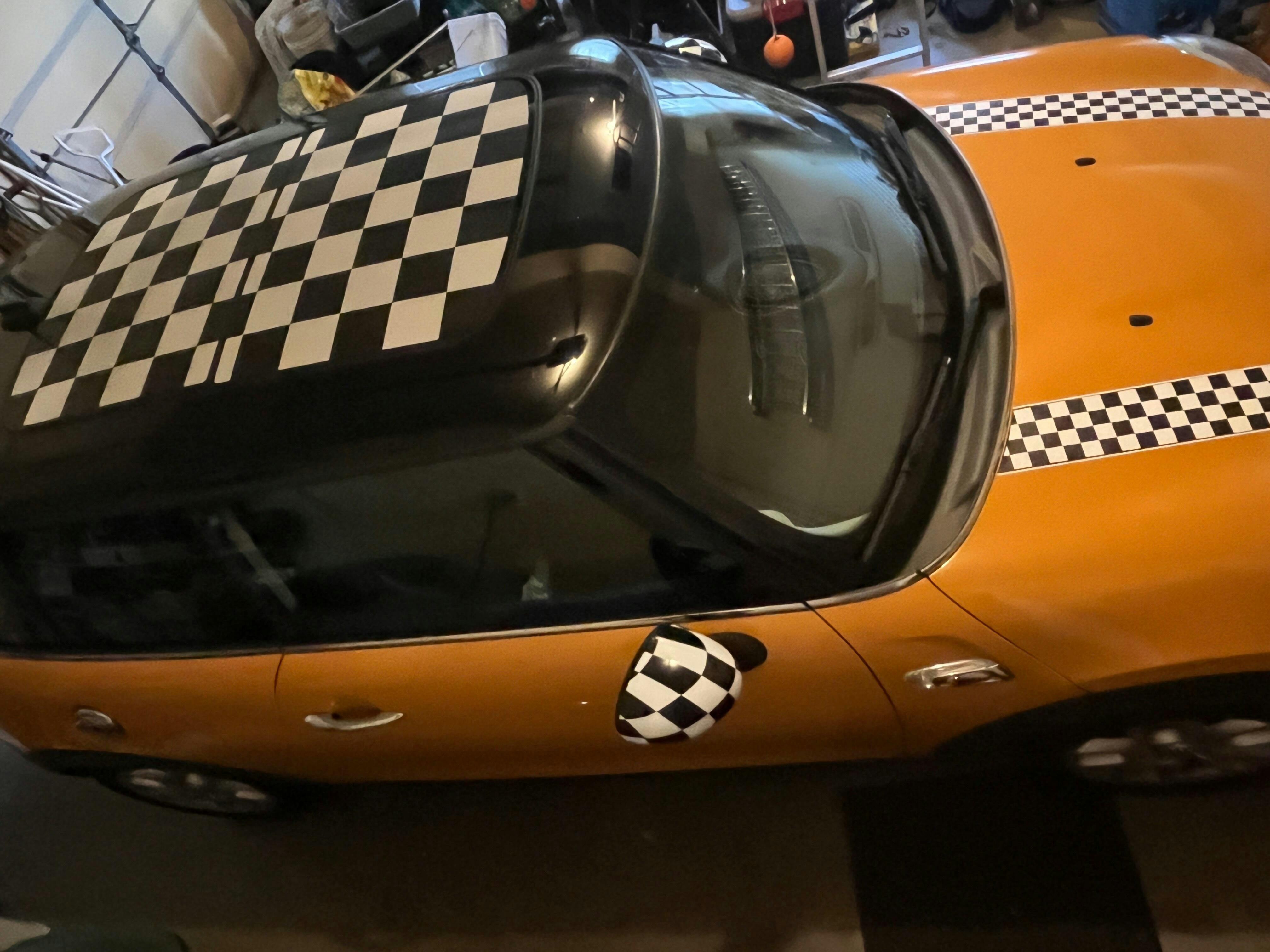 The checkerboard is a great sunroof sticker. A few tips to consider. 1) Cut off the front half inch that has just a thin strip of a box pattern and looks unprofessional. 2) indicate which is the front vs back panels to save time figuring it out. 3) Provide installation tips with the product rather than have to scan your website. I cut the backing of each piece down the middle, lined it up with the middle of the glass and taped securely in place on one side and near the middle to keep the middle point in place and near the seam in the sunroof. Slowly pulled the backing tape off from underneath as I used a smoothing tool to smooth out evenly. You can pull the sticker up a bit if you have to realign. Once one side is down, repeat with the other side, and the other half. The folding during shipping causes severe creases that don’t smooth out until you follow the website comment to warn with a hairdryer, while using a smoothing tool. Letting the sun evenly heat the entire surface worked well too and gave a very smooth and professional look. 👍